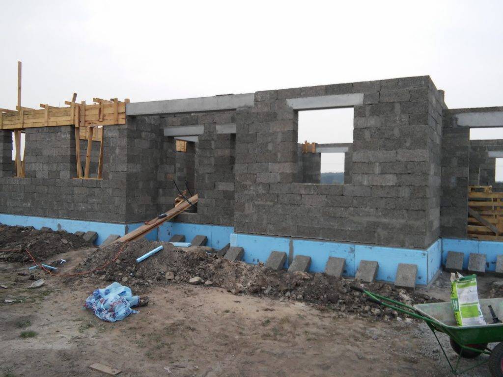 Первый этап – возведение фундаментной основы. Под арболитовые блоки фундамент может быть любого типа. Чаще всего профессионалами применяется ленточный фундамент. При закладке фундамента главное помнить о большой влагопроницаемости арболита, и хорошо гидроизолировать основание.