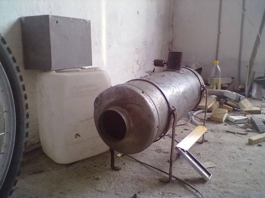 Изготовить не сложно – возьмите… готовую буржуйку, введите в нее стальной трубопровод с форсункой от старой газовой плиты. Его подсоедините к стандартному газовому шлангу с редуктором от бытового газового баллона.