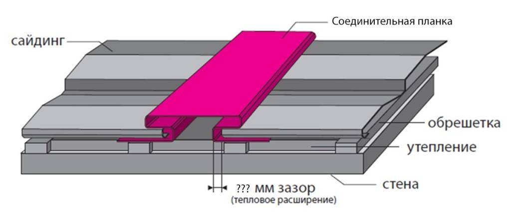 - так как сайдинговые панели могут менять свою длину из-за перепадов температур, следует оставлять небольшой зазор от 2 до 15 мм в зависимости от температуры;