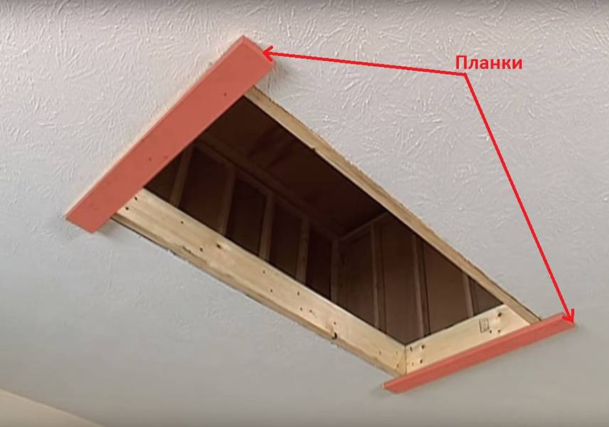 - Снизу устанавливаются две временные доски, на которые укладывается люк при монтаже. Это действие должно предшествовать закреплению каркаса.