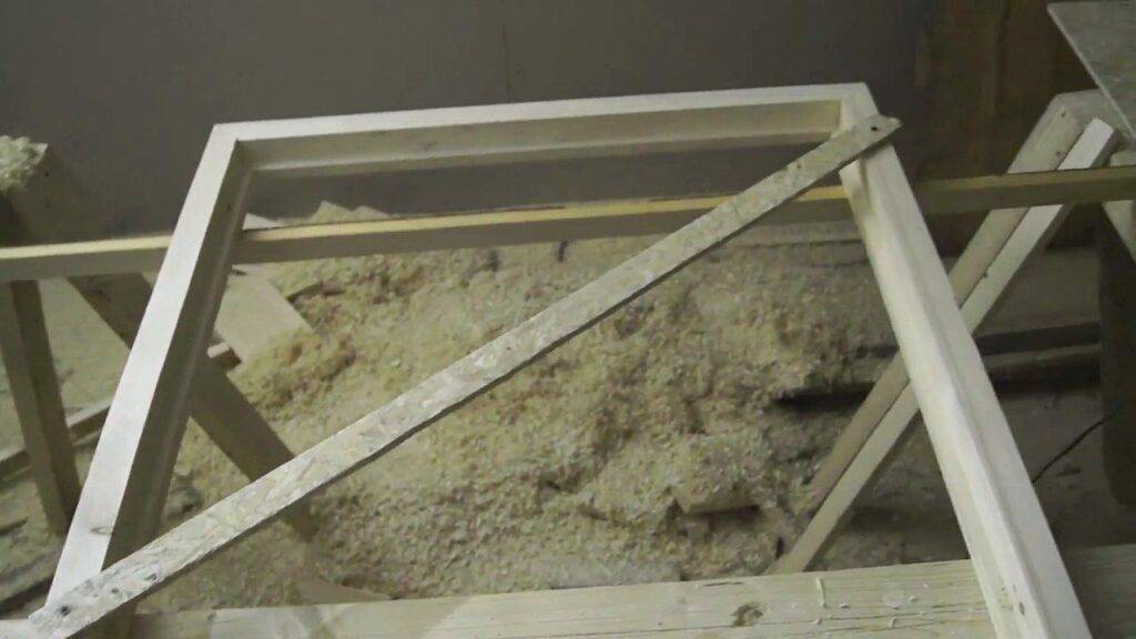 - После того как конструкция была разложена на монтажных досках, её необходимо выровнять, используя для этой цели подпорки.