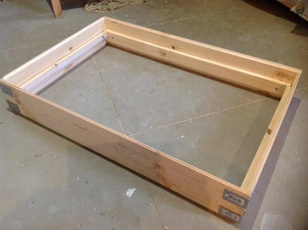 - По инструкции нужно сначала сбить раму из брусков, а потом прикрутить ее к листу ОСП, но мне было удобней сразу прикрутить бруски к листу, без предварительной сборки рамы.