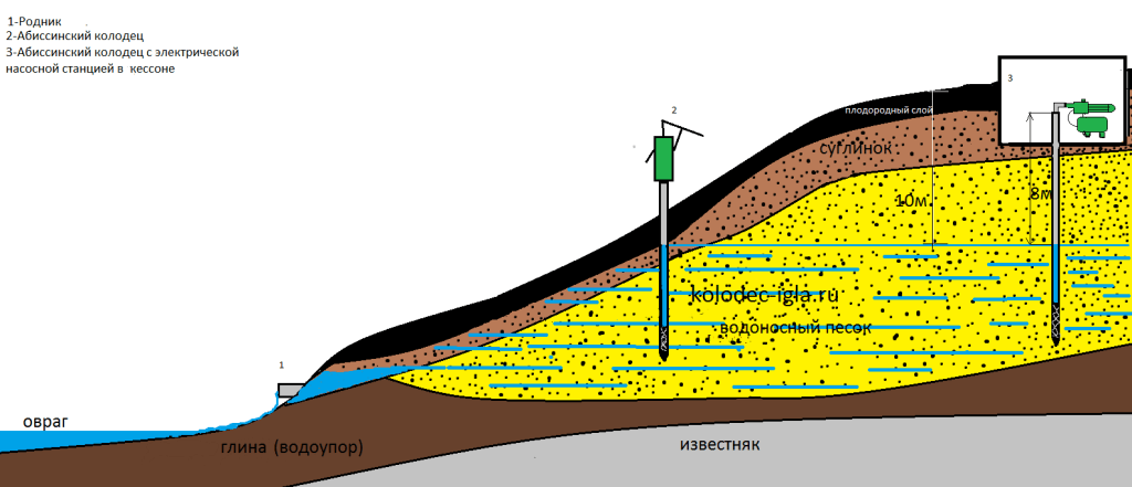 Существует 2 варианта скважины — песчаная (или межпластовая) и артезианская (еще называют бурением на известняк).