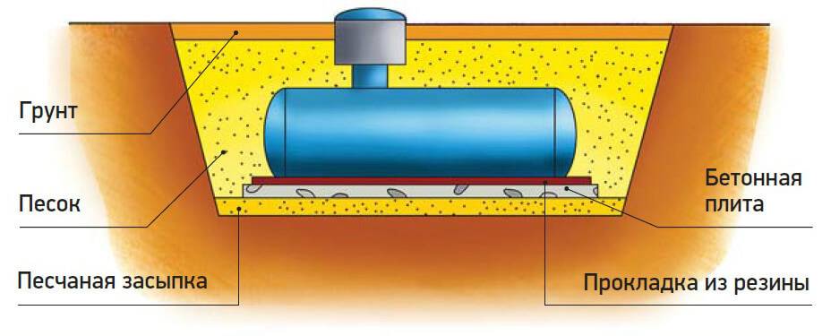 Для круглогодичного отопления целесообразнее установить горизонтальный подземный бак, углубив его так, чтобы газ не промерзал. Если прочность грунта или другие причины не позволяют использовать подземное хранилище, можно использовать наземный газгольдер, утеплив его. Но даже в этом случае, возможно, придется дополнительно установить испаритель.