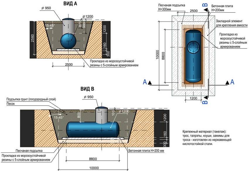 Например, при желании установить подземный бак нужно обратить внимание на наличие горловины, позволяющей опустить газгольдер ниже уровня промерзания грунта. А отсутствие опорных «лап» приведет к плохому закреплению оборудования и постепенной деформации днища