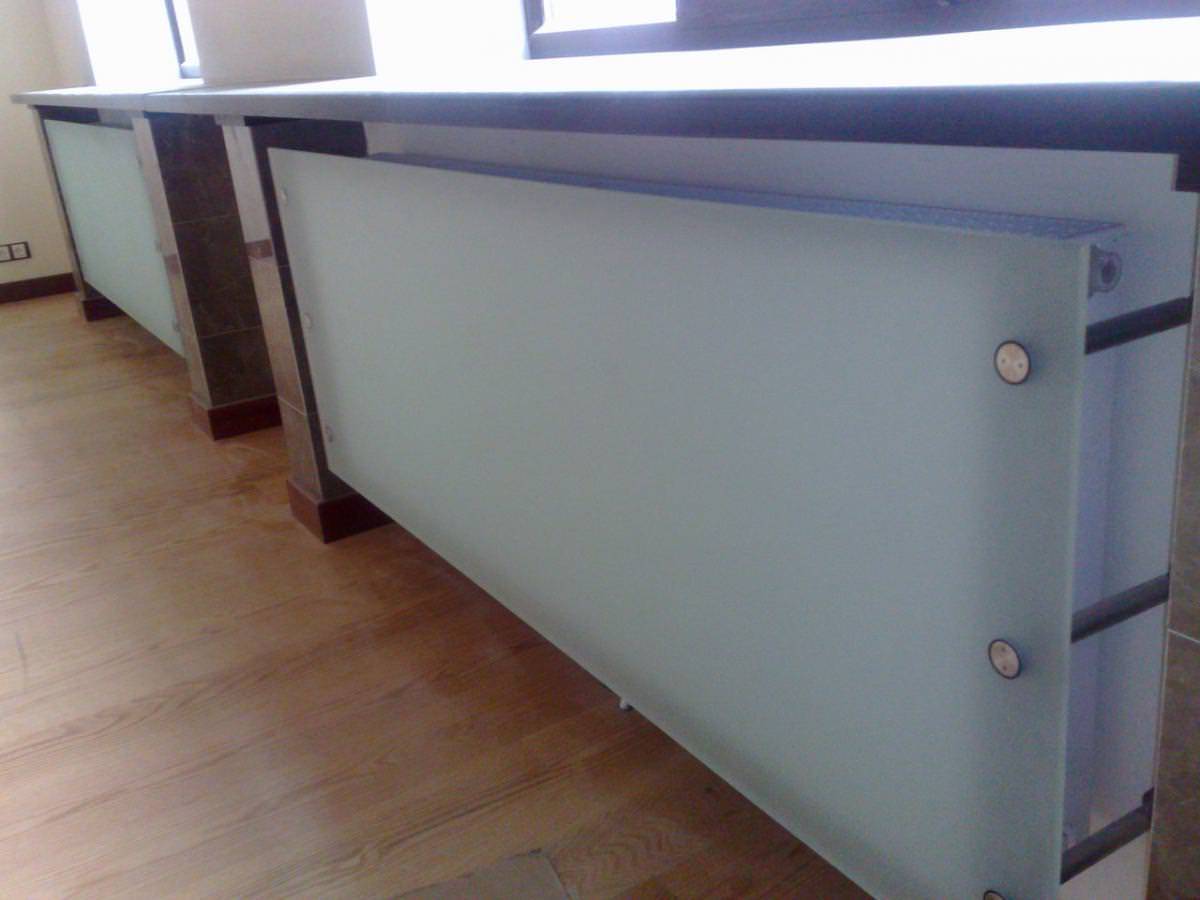 Многие задают вопрос, а точнее, придерживаются распространённого мнения, что стеклянные экраны на радиаторы отопления хрупкие и опасные, к ним нельзя подпускать детей. Действительно ли это так? Для изготовления стеклянных экранов для батарей отопления применяют стекло толщиной 6 мм, 8мм, и 10мм. Чаще всего, используют толщину 6 мм, так как увеличение толщины влияет на вес изделия. Поэтому при выборе учитывают, прежде всего, площадь батареи и количество дистанционных кронштейнов крепления, для равномерного распределения веса изделия.