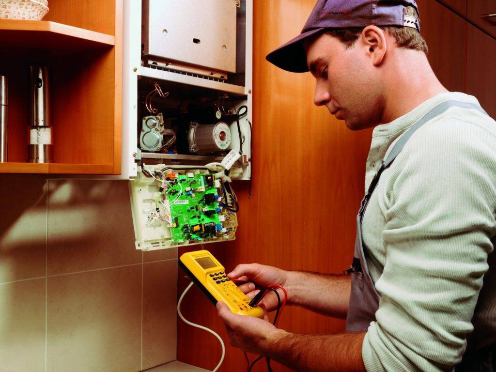 Если это прибор с электронным блоком управления, нужно проверить подачу электроэнергии. Если она отсутствует, то поломка легко устраняется самостоятельно. В случае протечки воды на стыках фитингов и тройников их нужно поджать. Все другие работы, связанные с нарушением целостности газового оборудования, могут выполняться только специалистами гарантийного сервиса или газовой службы.