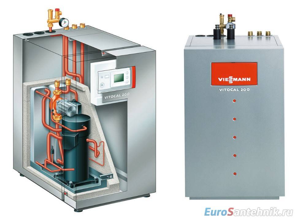 - Viessmann. Насосы этого бренда отличаются высокой производительностью — примерно до 290 кВт, а также способны нагревать теплоноситель до 60 градусов. Традиционно в ней имеется встроенная накопительная емкость. Среди продуктов выделяют модель Vitocal 300-G/W Pro. Именно она адаптирована под суровый зимний климат.