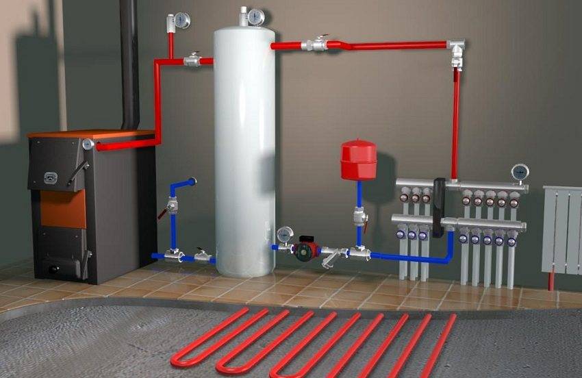 Следующая проблема – это взаимное влияние разных видов потребителей (теплых полов, внешнего бойлера, нескольких групп радиаторов). Для их нормального функционирования нужны разные объемы и температуры теплоносителя.