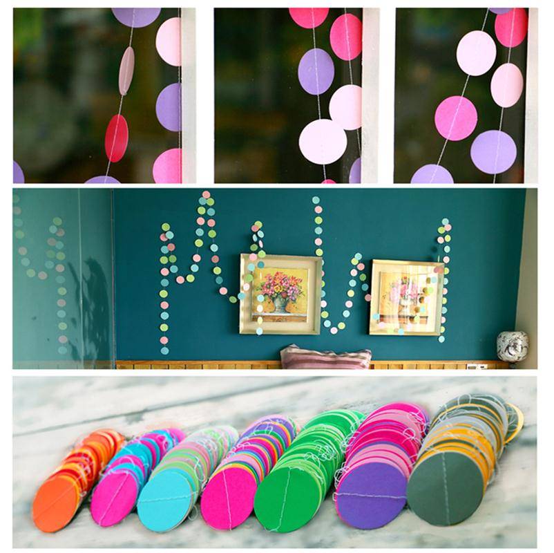Украшение в виде гирлянды можно изготовить из бумажных флажков и кружков. Этот вид гирлянды является одним из наиболее распространенных способов создания разодетого вида помещения. Существует большое количество разнообразных видов такого образа украшений.