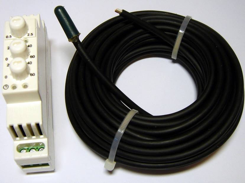 - Собственно, терморегулятора. Данный прибор призван включать в работу систему обогрева в заданном диапазоне температур. Обычно рабочий диапазон устанавливается в пределах -8..+3 градуса.