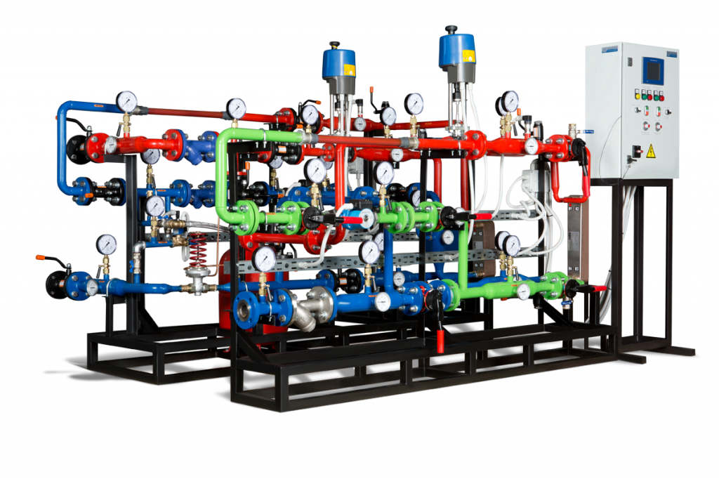 Современные тепловые пункты могут иметь разную комплектацию, от которой будет меняться тип управления горячим водоснабжением, системой отопления или сразу всеми системами. От выбранной комплектации зависит и возможное назначение теплового пункта.