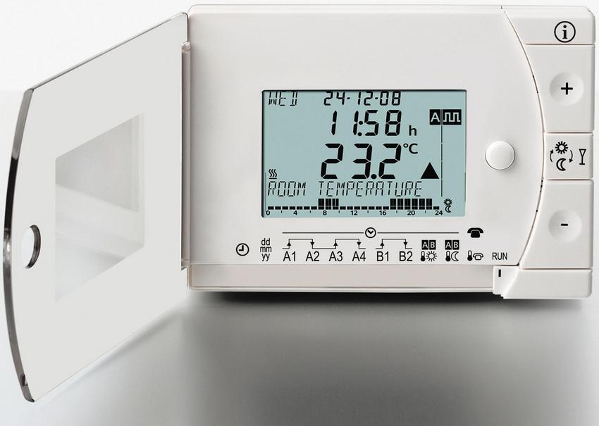 - Электронные. Это сложный прибор, оснащенный дисплеем и датчиками, которые реагируют на температурные перепады. Чувствительные датчики подают сигналы, включающие или выключающие установку. Терморегуляторы электронного типа можно контролировать и программировать удаленно. Они имеют высочайшую точность.