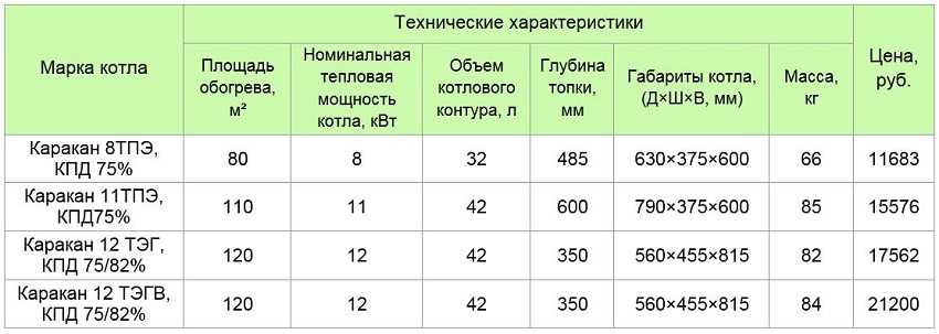 Таблица 3. Твердотопливные пиролизные котлы Буржуй & К от ООО «НПО «ТЭС» (г. Кострома):