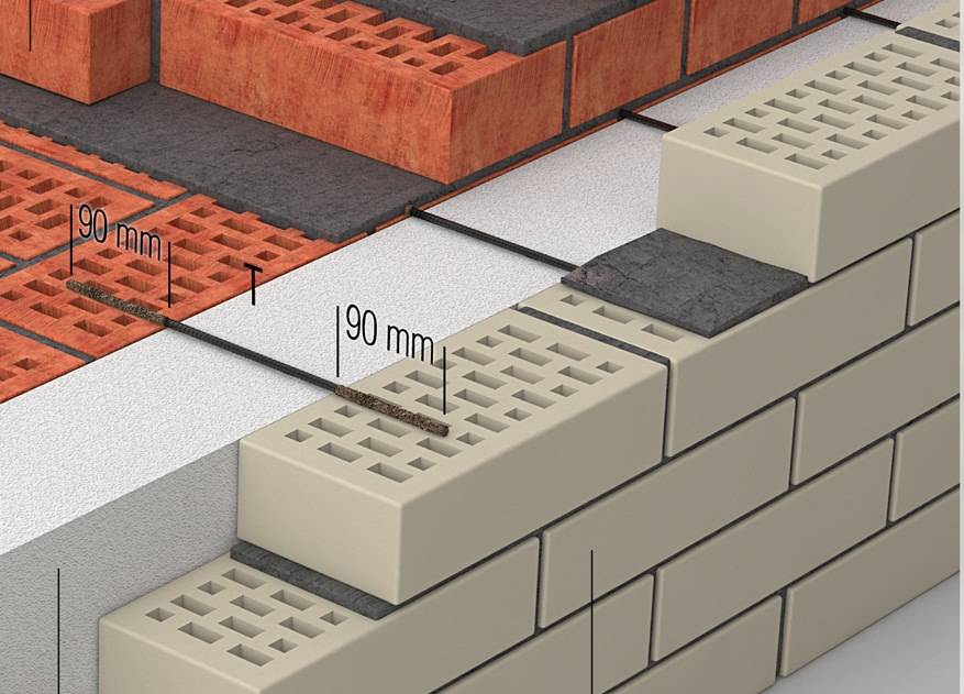 Примите во внимание: так как кирпич или камень — самый тяжелый фасадный материал, то к фундаменту выполняется крепеж сетки из арматуры.