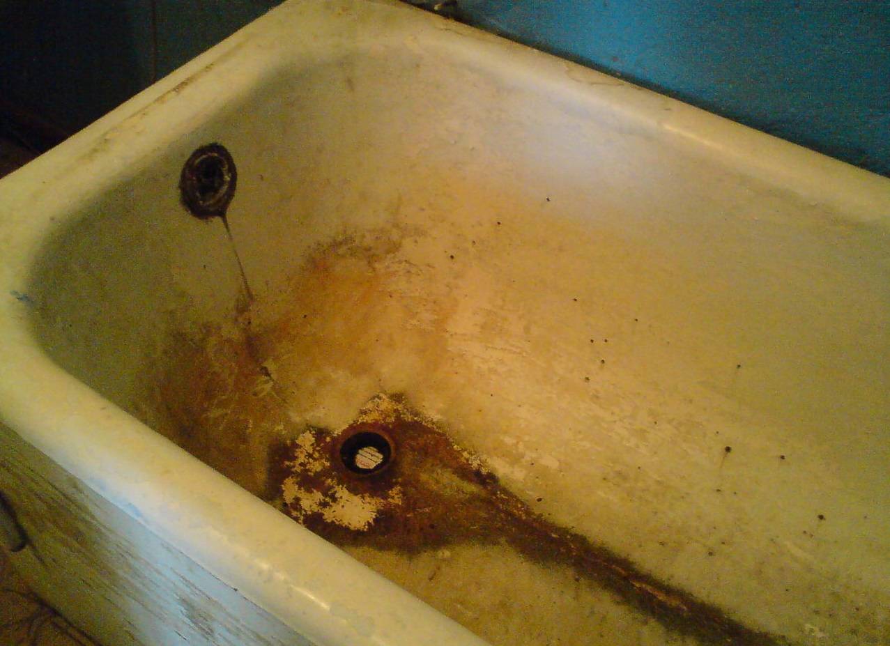 Важно следить за проходимостью стоков канализации: контакт с медленно уходящей водой дополнительно провоцирует ржавчину. Использовать специальные полироли для ванн