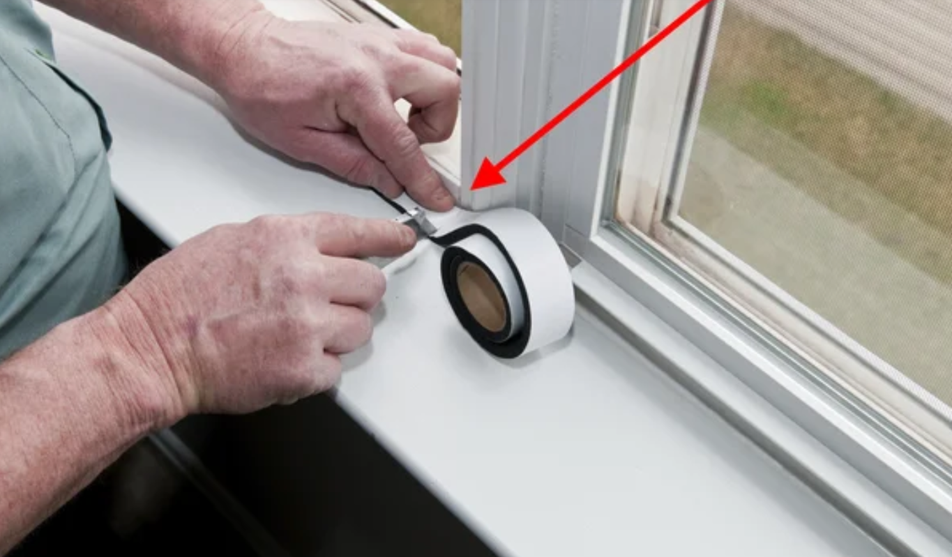 - используйте поролон на клейкой ленте, который и утепляет, и оклеивает щель;