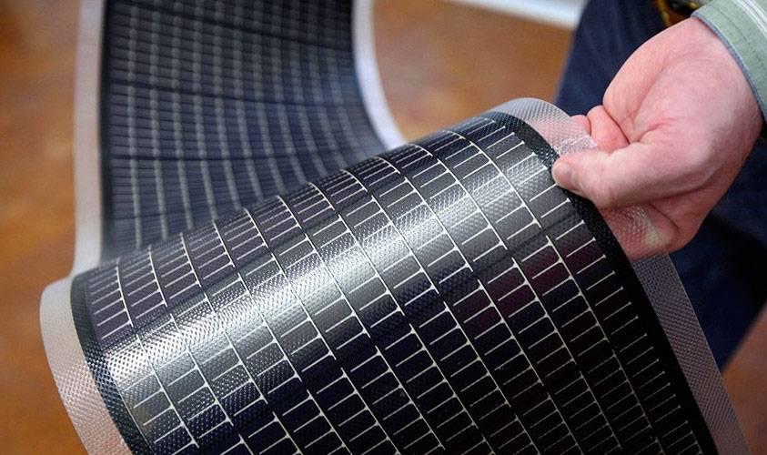 Интересная разработка – гибкие солнечные батареи. Благодаря эластичности, фотополотно значительно проще устанавливать – панель “подстраивается” под форму крыши или другой опоры.