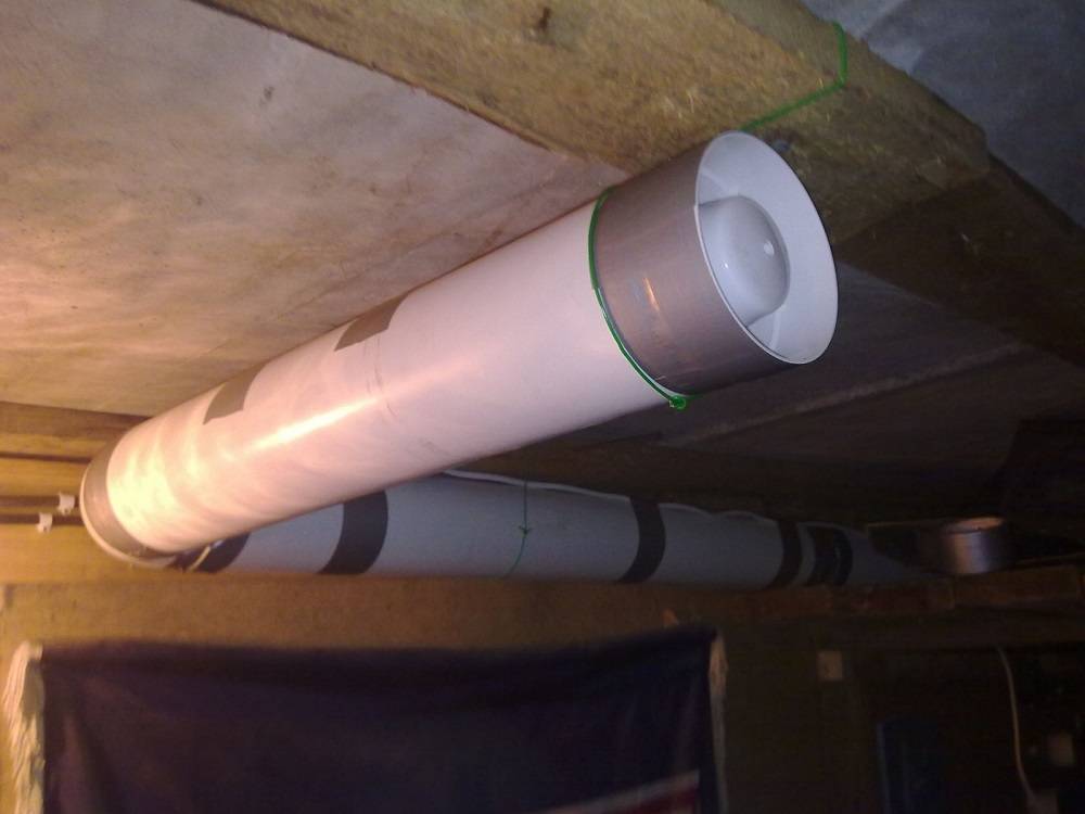 - Трубу притока опустите до высоты 10—20 см над полом, второй конец выведите на улицу по кратчайшему пути.