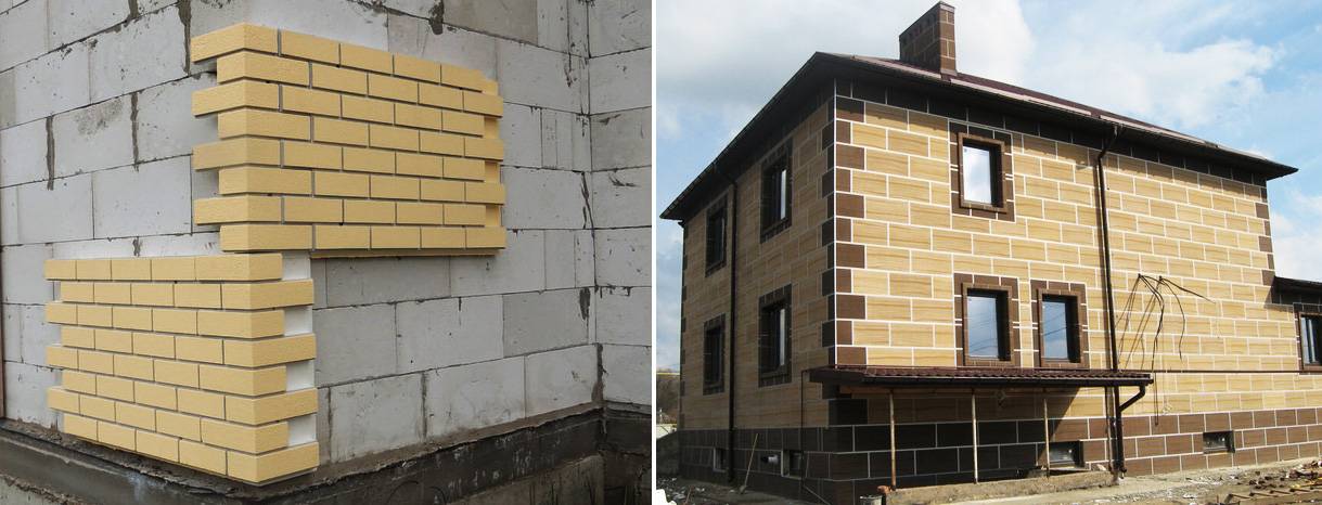 Это симбиоз утеплителя и облицовочного декоративного материала. Используют только для наружной отделки кирпичного дома. Сам теплоизоляционный материал состоит из нескольких слоев пенополиуретана и пенополистирола. Искусственный камень служит лишь предметом наружной декорации.