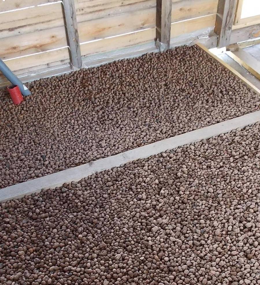 К недостаткам этого метода можно отнести тот факт, что по такому полу ходить не будет возможно, разве, что сделать монтаж деревянного перекрытия, ведь цементная стяжка на такой материал не применяется.
