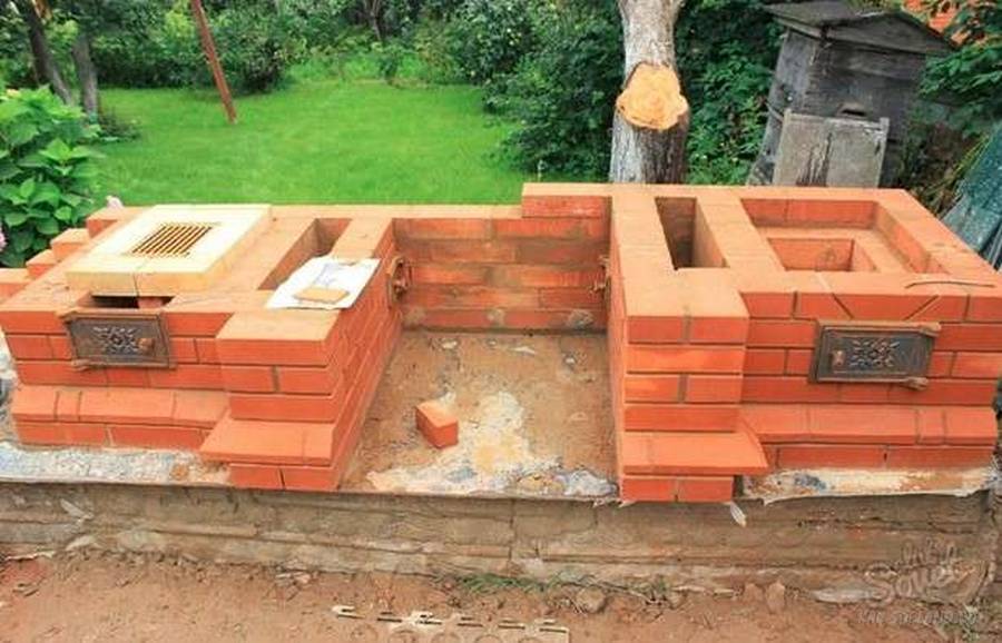 Если позволяет место и необходимо регулярно готовить большое количество продуктов, то имеет смысл сделать стационарную коптильню горячего копчения из кирпича.