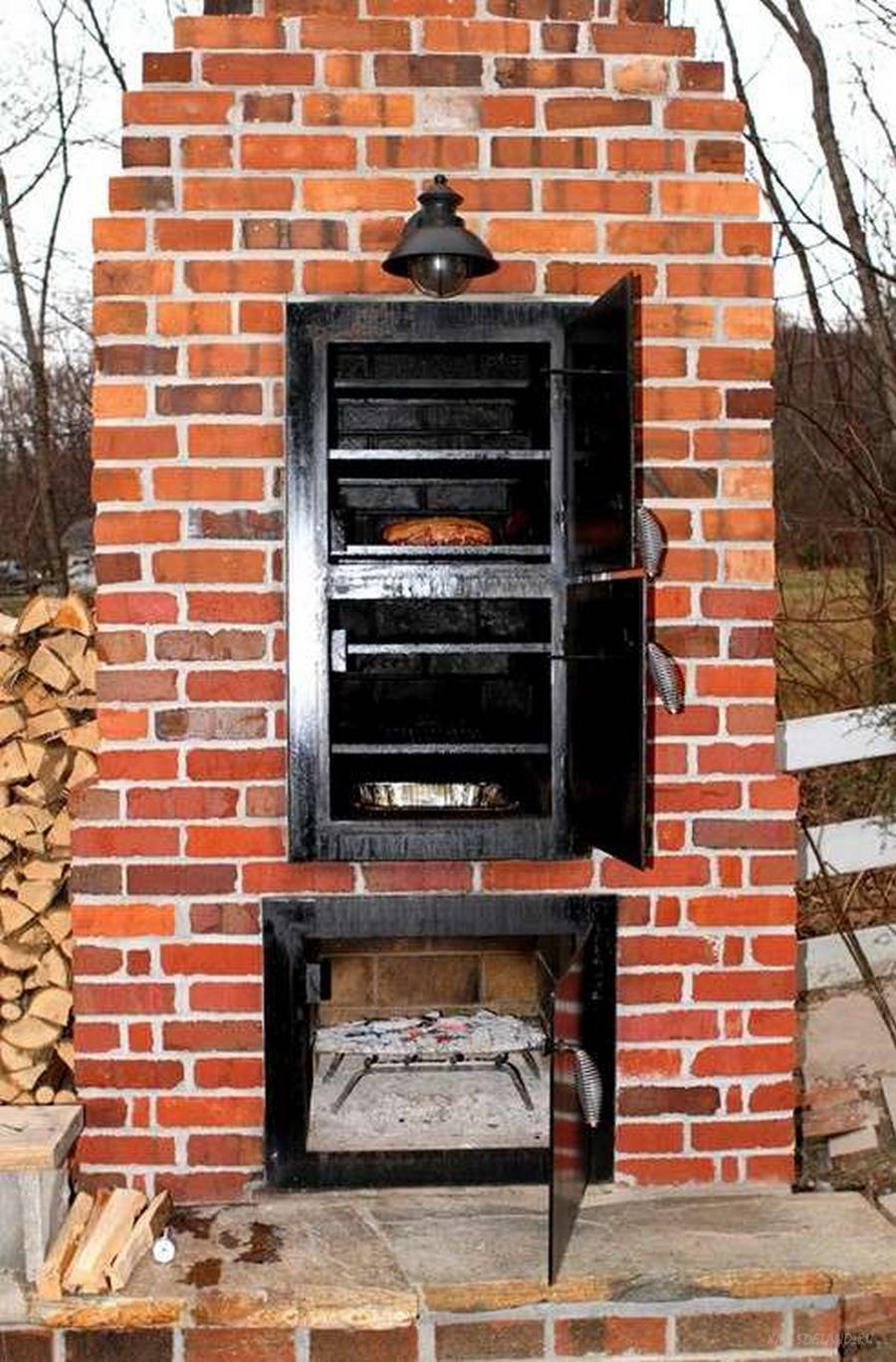Вывод дыма также лучше заранее продумать, особенно при холодном методе обработки продуктов. Удобство поддержания оптимальной температуры обеспечивает установка металлических термометров внутри конструкции, а также прямой доступ к топке для подкидывания щепок.
