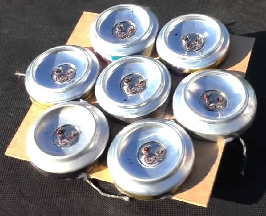 Данный вариант уже является более серьёзным в отличие от первых двух. Это тоже невероятно дешёвый и эффективный способ получить энергию. Единственное, на выходе её будет гораздо больше, чем в вариантах из диодов и транзисторов и она будет не электрическая, а тепловая. Всё что вам надо – большое количество алюминиевых банок и корпус. Хорошо подходит корпус из дерева. В корпусе лицевая часть должна быть закрыта оргстеклом. Без него батарея не будет эффективно работать.