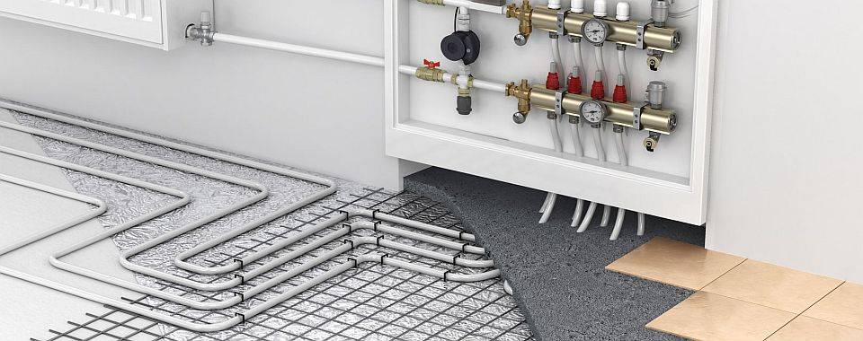 Весь трубопровод системы водного теплого пола располагаются на одной горизонтальной плоскости. Это обеспечивает более свободный и равномерный ток воды внутри системы.