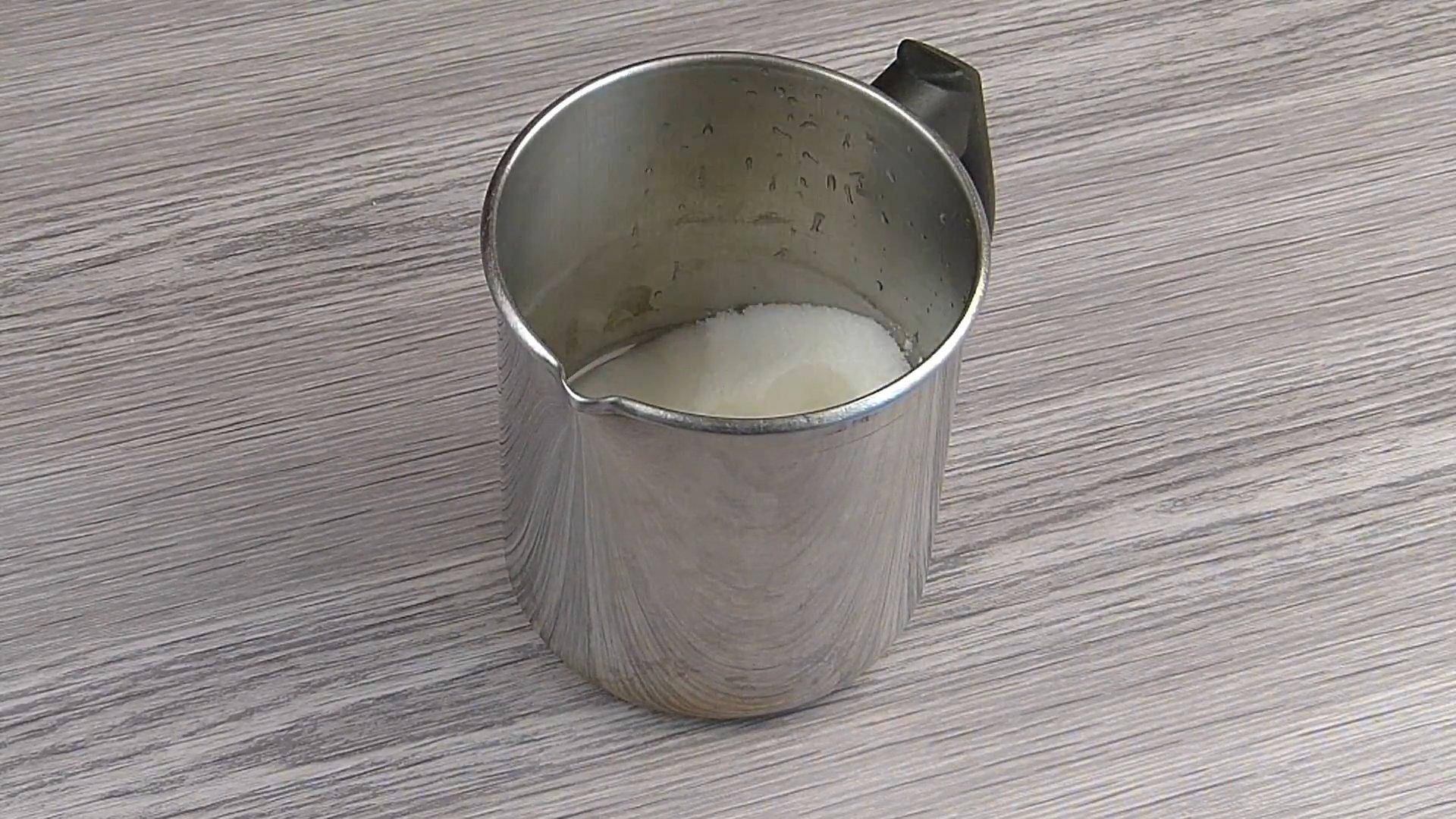 В сотейник или любую удобную посуду высыпаем сахар, заливаем его оставшейся водой и ставим на огонь.