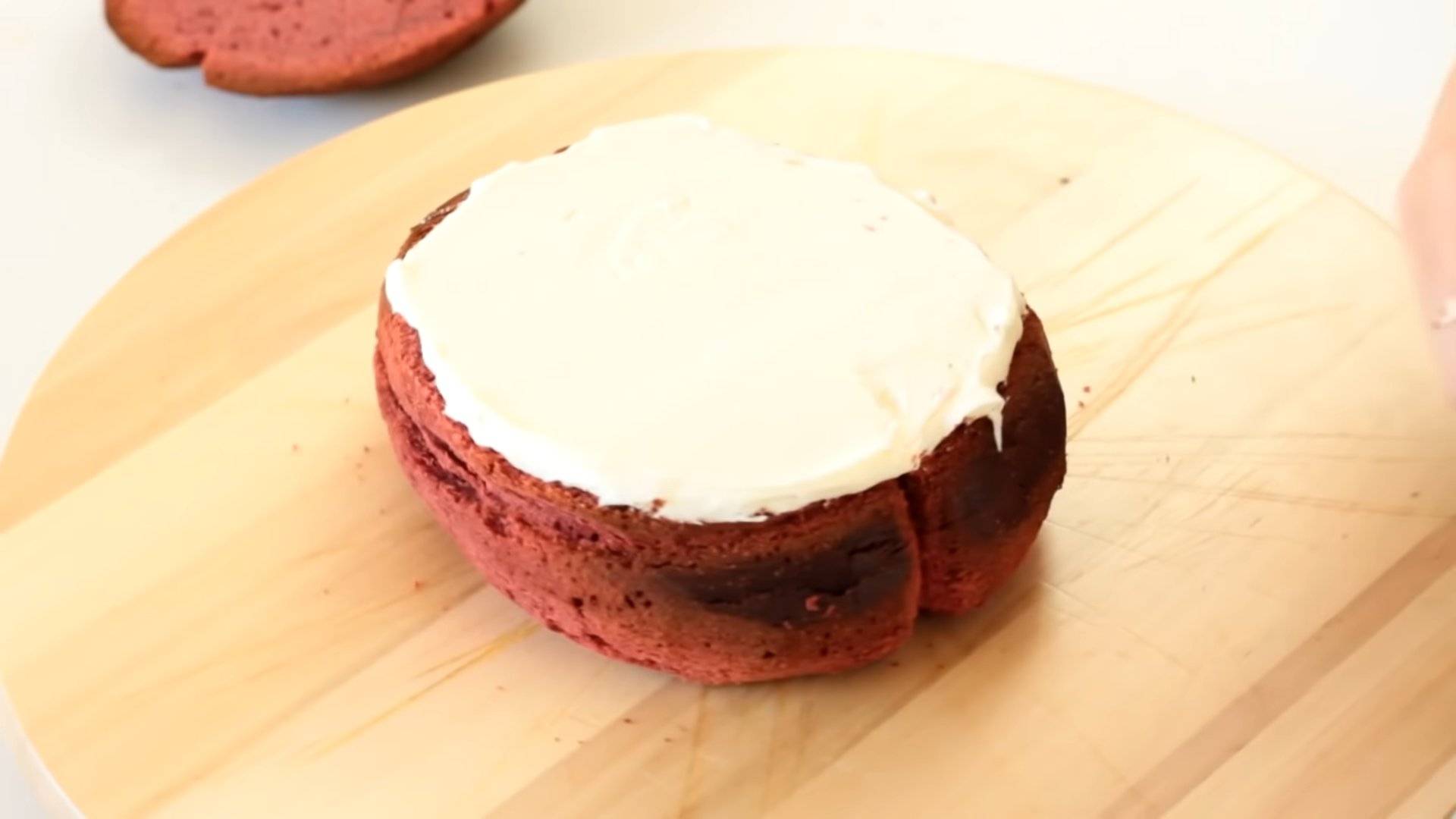 Получившимся масляным кремом тщательно выравниваем поверхность торта.