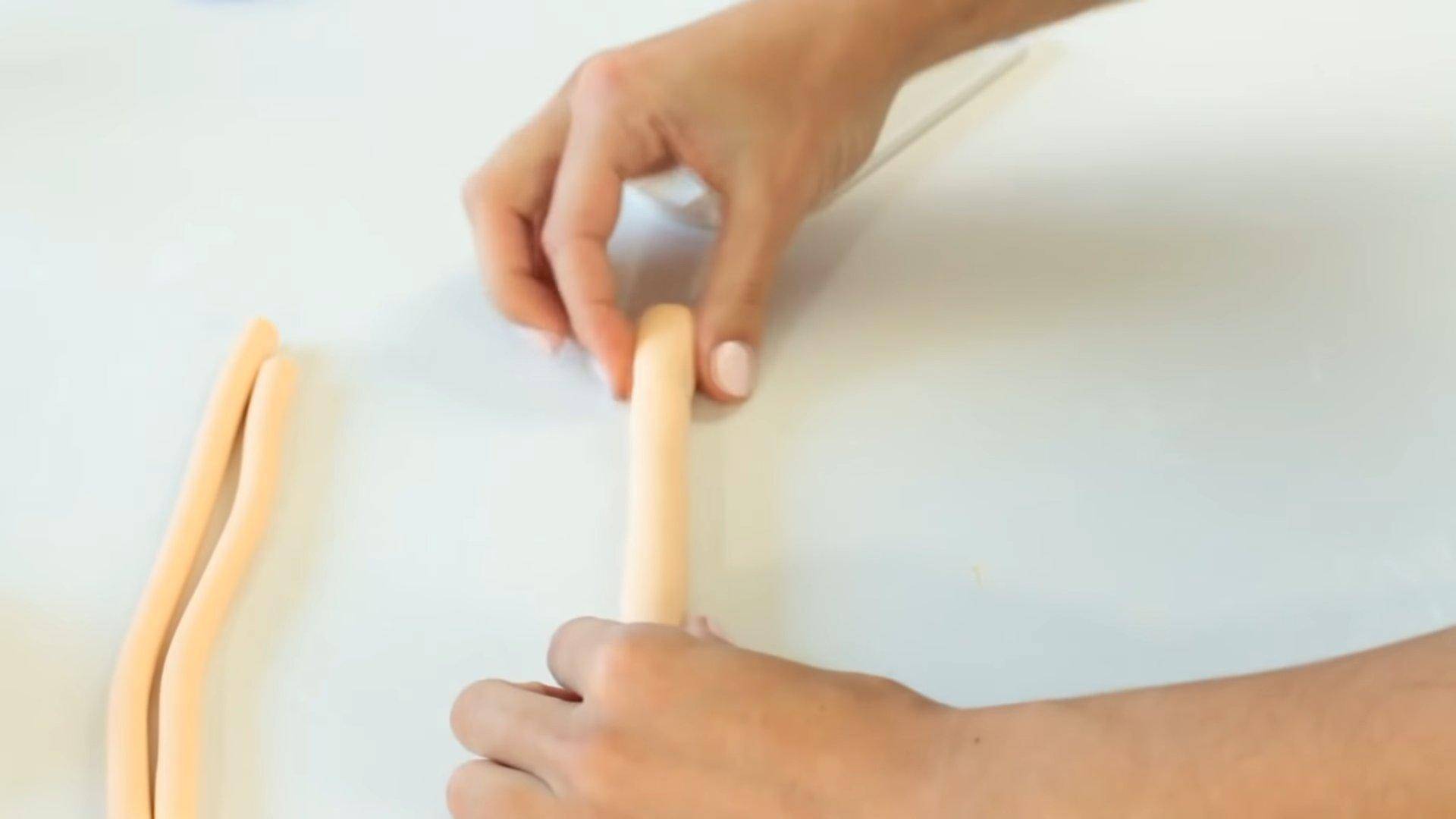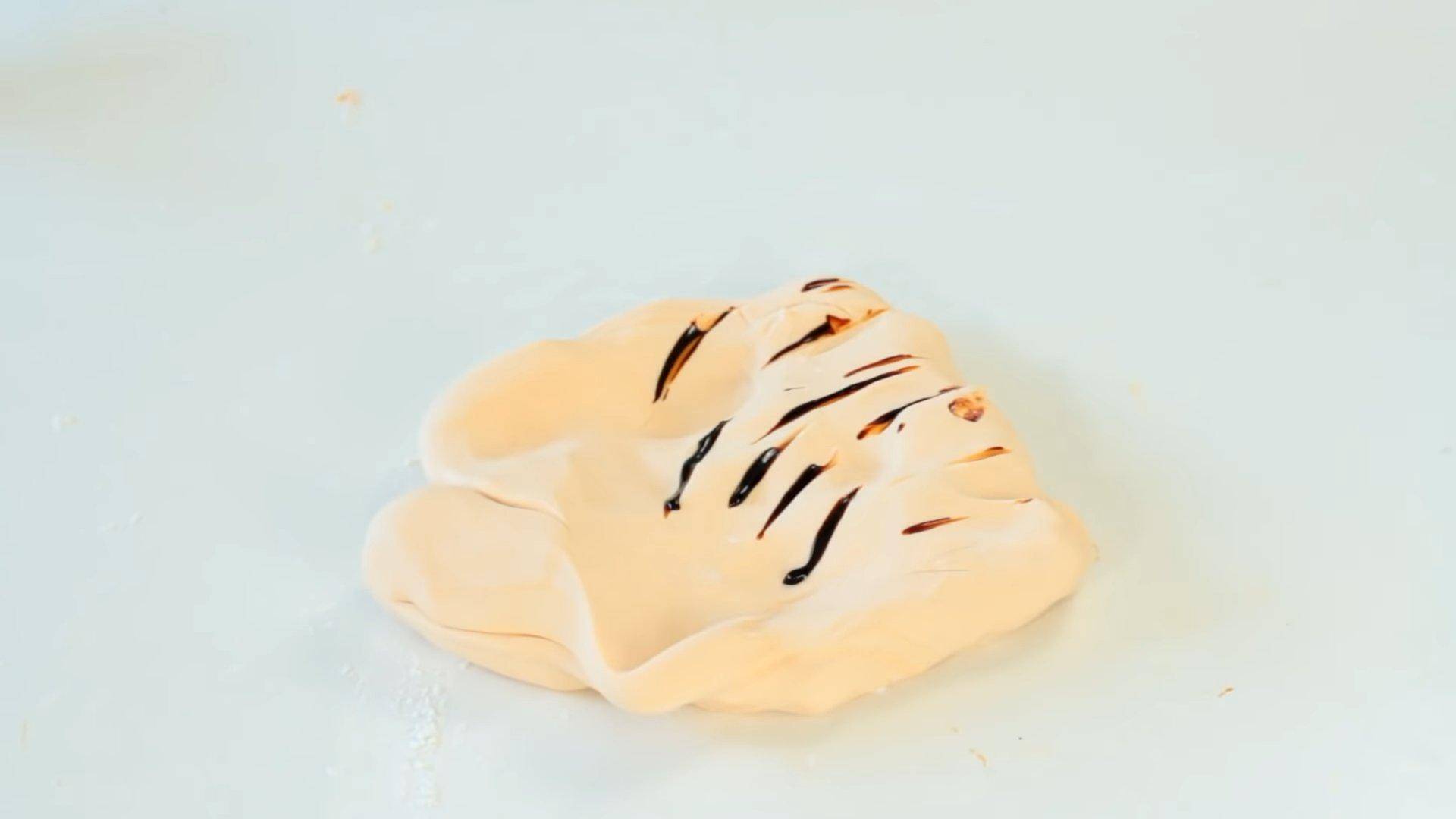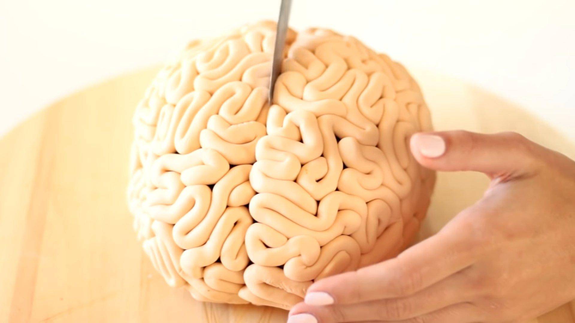 Белую мастику окрашиваем пищевым красителем в телесный цвет и лепим из нее «извилины» мозга.