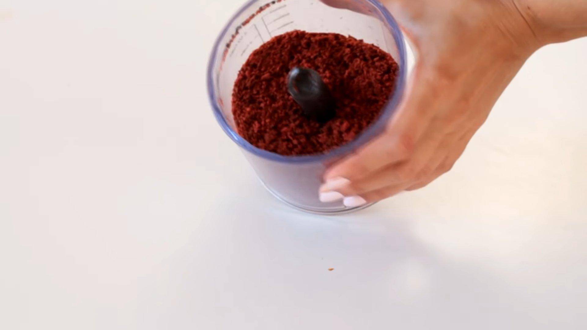 Чтобы придать тесту кровавый оттенок, добавляем в него пищевой краситель красного цвета и хорошо перемешиваем.
