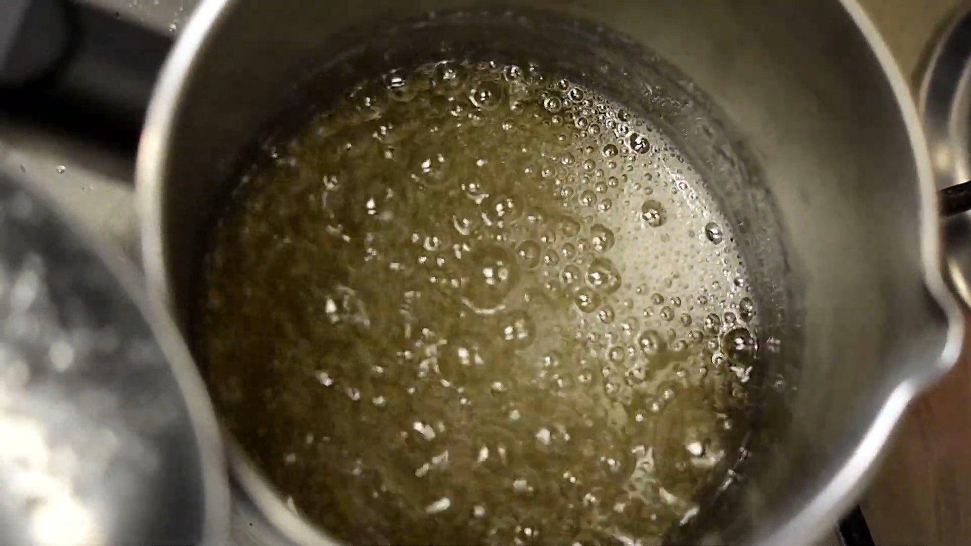 Когда сироп закипит, снимаем его с огня и переливаем в глубокую стеклянную миску.