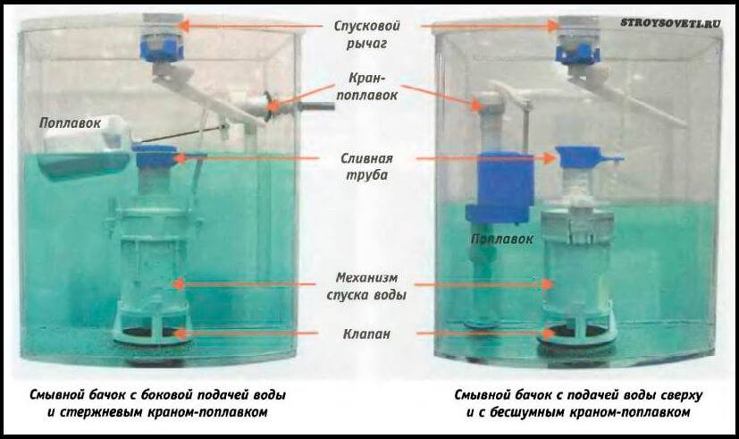 Основа работы у всех будет одинакова. Различия будут в конструкции бачка. Они могут быть следующими: