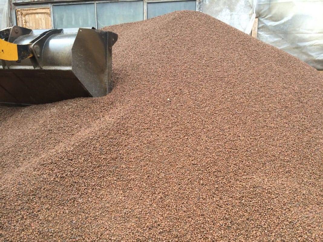 - Керамзит. Это легкие окатыши диаметром 1-2 см, спеченные из керамического сырья. Материал не гигроскопичен, прочен, не огнеопасен, мало слеживается. Он также не подвержен биологическим угрозам. Единственный недостаток – низкие показатели теплоизоляции, вынуждающие применять толстые слои материала. При засыпке керамзита между стенами его часто смешивают с цементным раствором. Получается очень прочный материал. Делать это нужно слоями по 20 см, давая каждый раз время раствору на схватывание. В противном случае нижнюю часть стены может распереть.