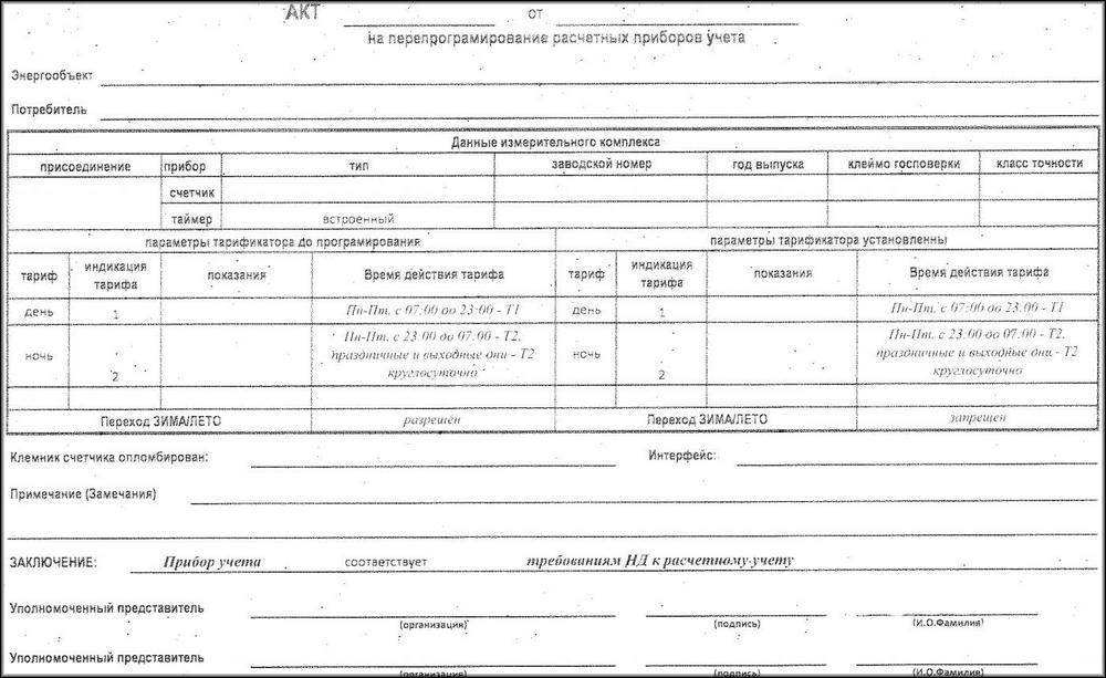 - заключить договор, предусматривающий предоставление акта о перепрограммировании учетного прибора. Эту бумагу надо подать обслуживающему поставщику электроэнергии для опломбировки, для внесения изменений в договор на тарификацию.