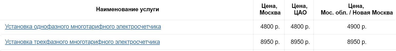 Ценовой диапазон электросчетчиков для трехзонной тарификации — от 2 до 6 тысяч рублей (Энергомера, Меркурий). Стоимость установки многотарифных электросчетчиков Мосэнергосбыт, включая цену прибора, отражена ниже.