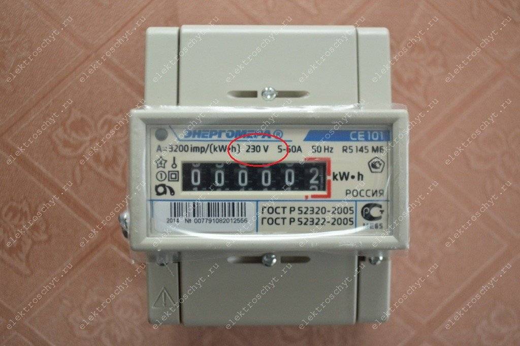 Чтобы правильно выбрать электросчетчик для квартиры, дома, необходимо для начала определиться сколько фаз в электрической сети. Здесь все достаточно просто, если к Вашему вводному автомату в квартиру или дом подходит кабель с двумя жилами (фаза и ноль) – значит у Вас однофазная электросеть и электросчетчик для квартиры вам нужен однофазный. Такой электросчетчик для квартиры рассчитан на напряжение 220 В, что и будет указано на панели электросчетчика.