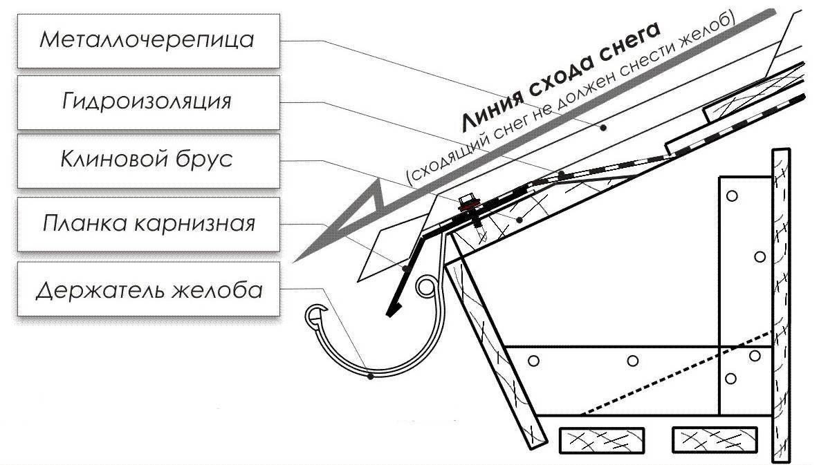 . Отвечает за слив воды по водостоку, установка на краю крыши. - Конек.