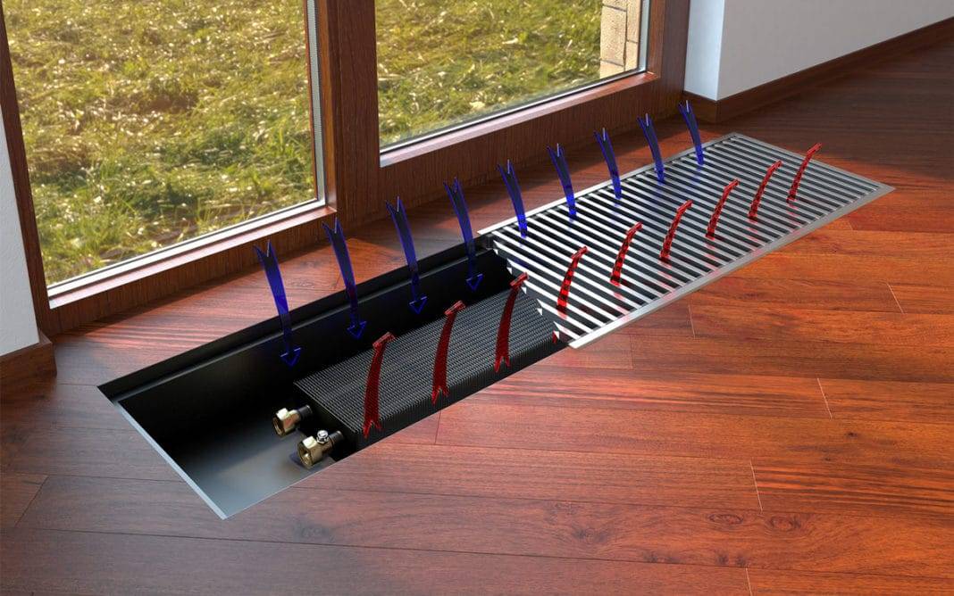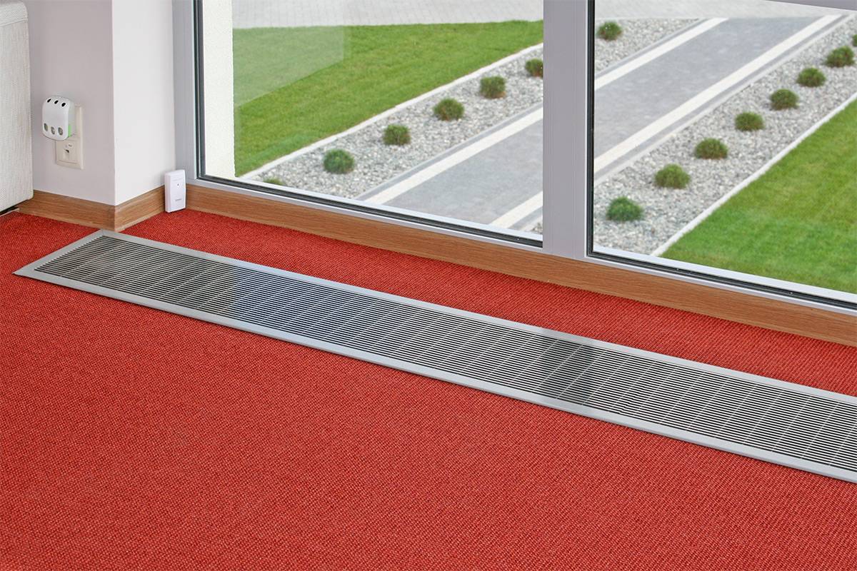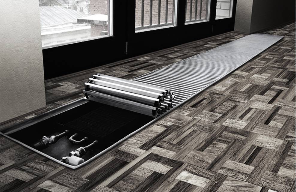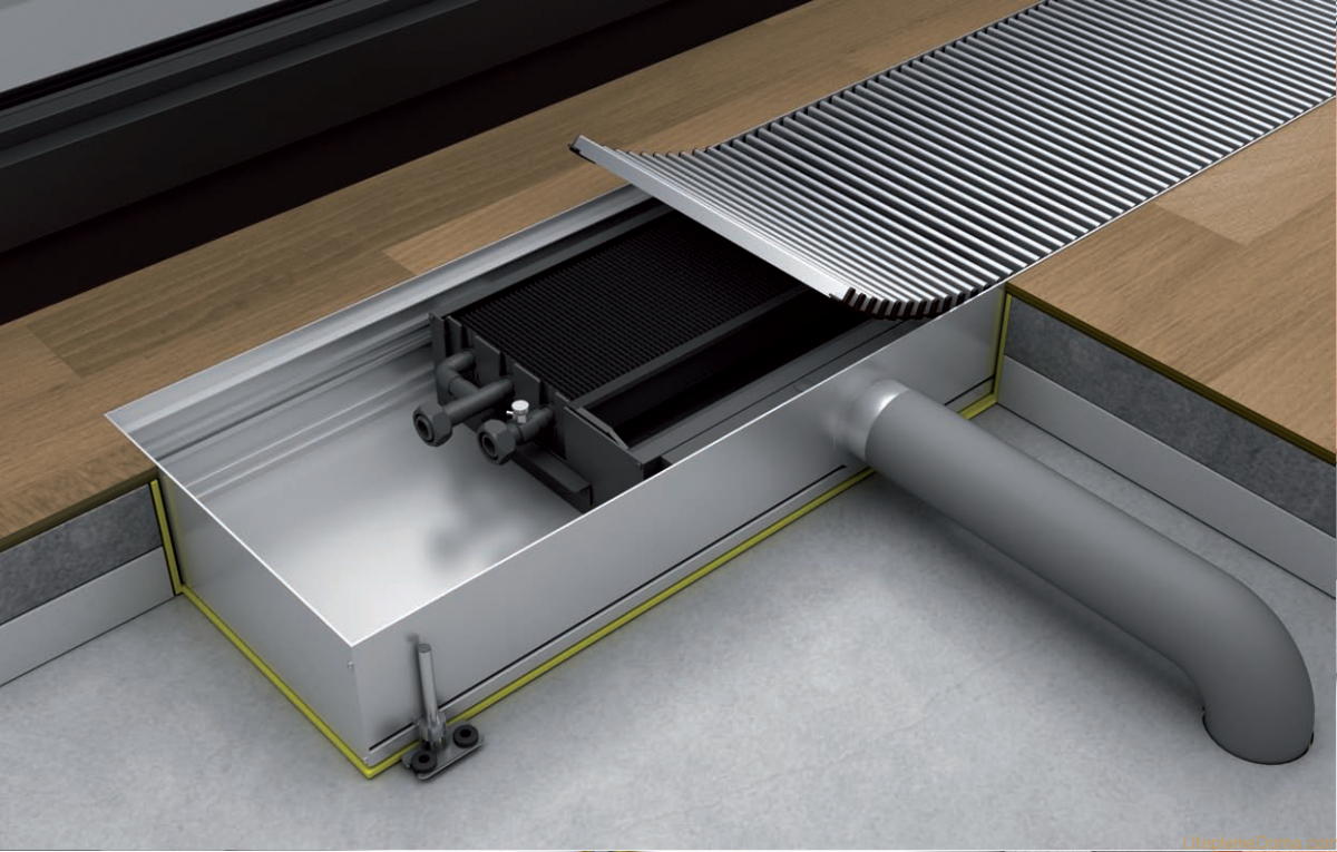 Внутрипольные конвекторы отличаются от других видов отопительного оборудования тем, что их встраивают непосредственно в специально подготовленную в полу нишу либо в цементную стяжку.