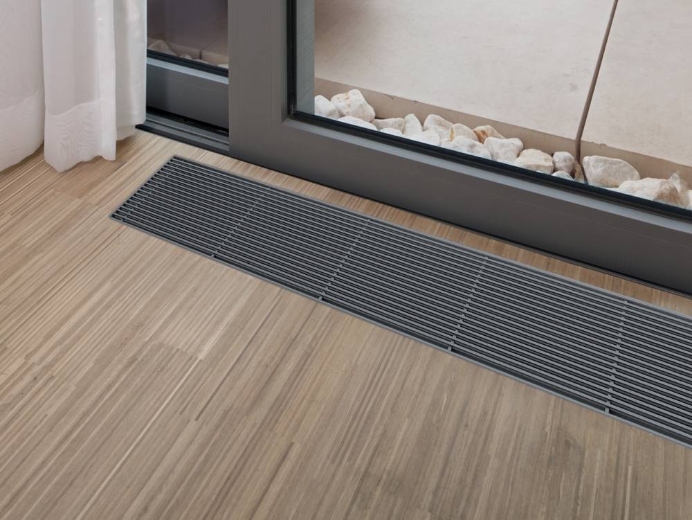 Классические напольные радиаторы отопления состоят из канала, нагревательного элемента и декоративной панели, которая скрывает все «внутренности» отопительного прибора и защищает их от негативного внешнего механического воздействия. Нагревательный элемент с помощью труб подключается к централизованной системе и использует в своей работе ее теплоноситель. Как правило, встраиваемый в пол конвектор специалисты рекомендуют для установки в тамбурах, дверных проемах, на лестничных площадках, в зимних садах и пр.
