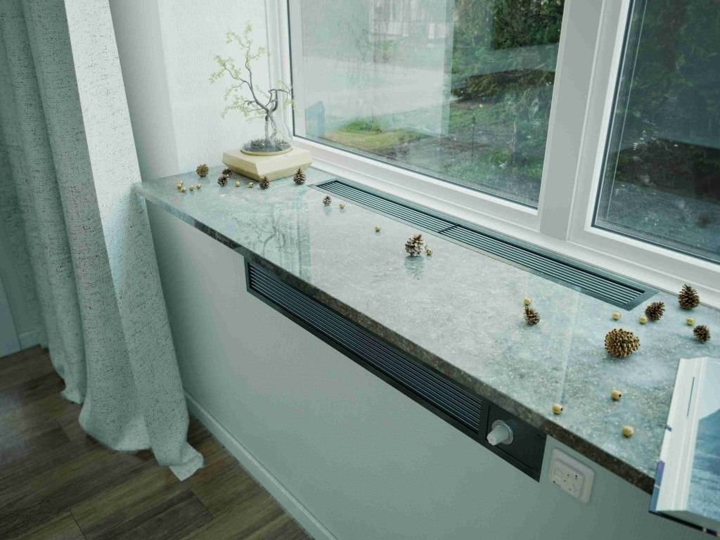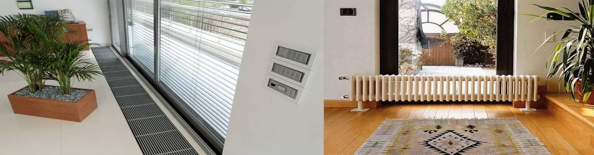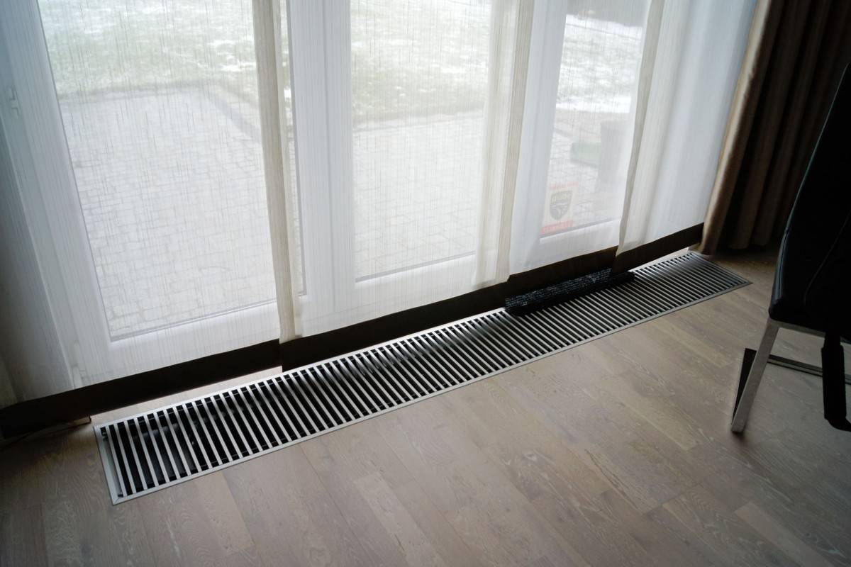 - внутрипольные – встраиваются в пол, не допускают выпадения конденсата на больших окнах.