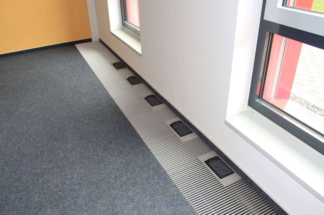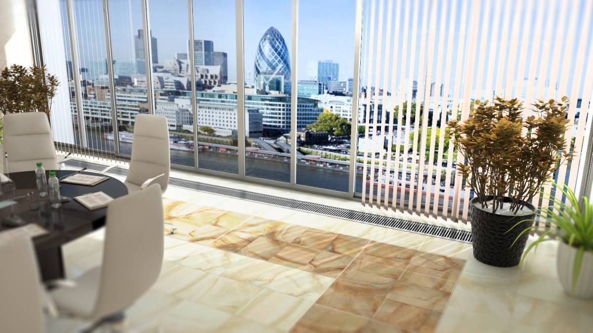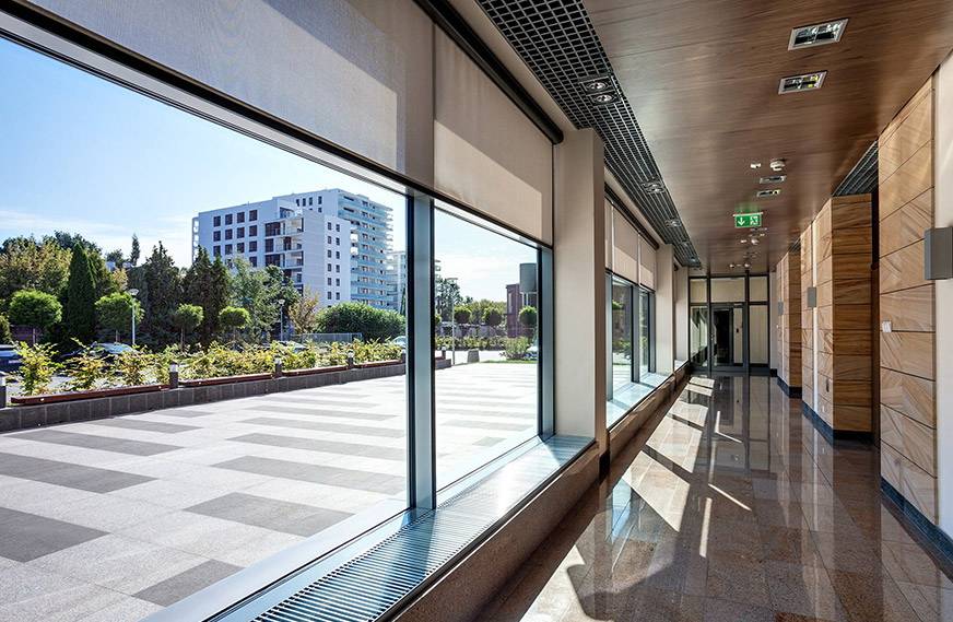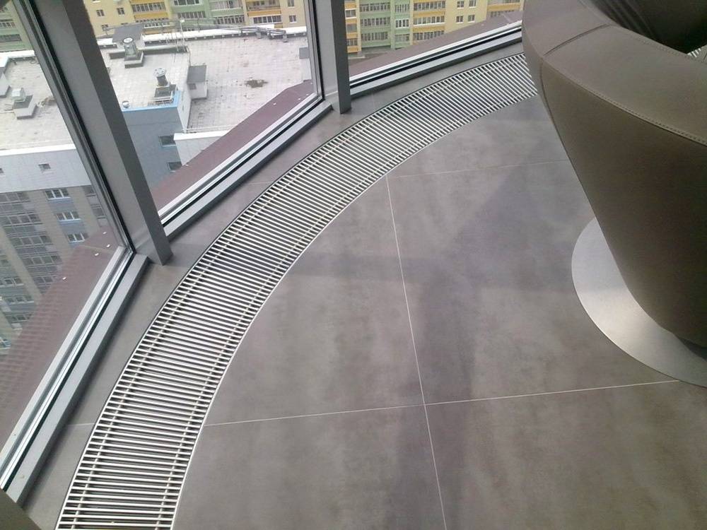 Довольно-таки часто в строительстве в последнее время используется панорамное остекление, особенно в многочисленных торговых, финансовых и коммерческих учреждениях. И одна из проблем, связанных с широким применением стекла, – как разместить при этом традиционные системы обогрева. Во избежание такого противоречия в качестве источника обогрева в подобных случаях очень хорошо подходит встраиваемый в пол конвектор. Он позволяет выполнить отопление, в то же время практически не видим и не вносит диссонанс в интерьер.