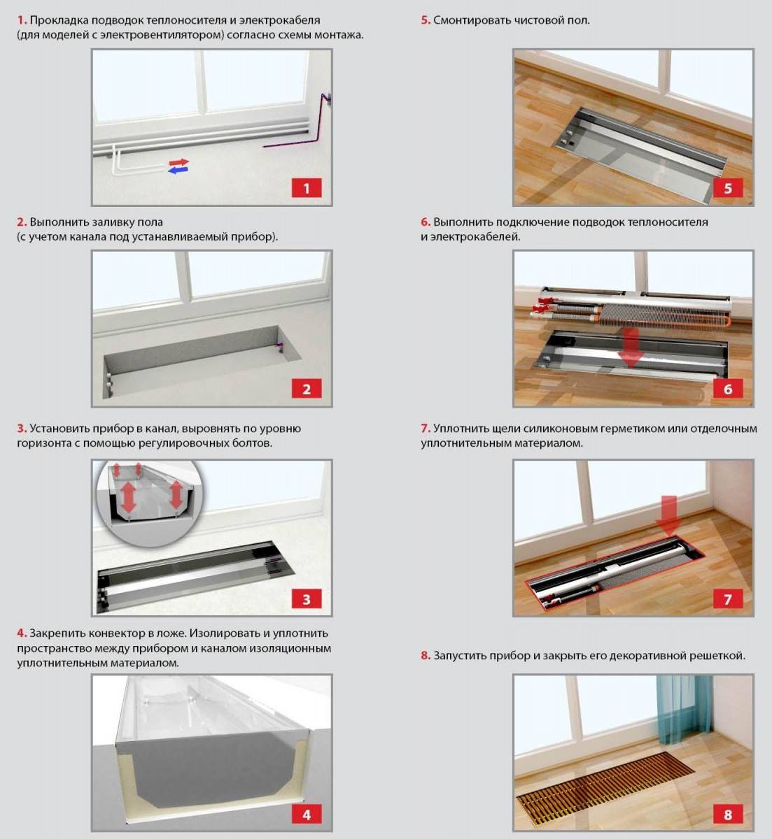 Важно! Монтируются внутрипольные конвекторы до начала работ по ремонту и отделке помещений