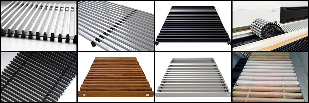 Длинный и широкий напольный встраиваемый конвектор. Он может использоваться как самостоятельный элемент обогрева, поскольку имеет высокую мощность и хорошую производительность. Трубка теплообменника сделана из меди с тонкими алюминиевыми пластинами, которые нагреваются достаточно быстро. Монтаж простой, подключается к одно- и двухтрубчатой системе отопления, а сверху декорируется решеткой. Она не поставляется в комплекте, однако можно выбрать решетку из алюминия, нержавеющей стали или дерева, чтобы она образовала с полом единый элемент.