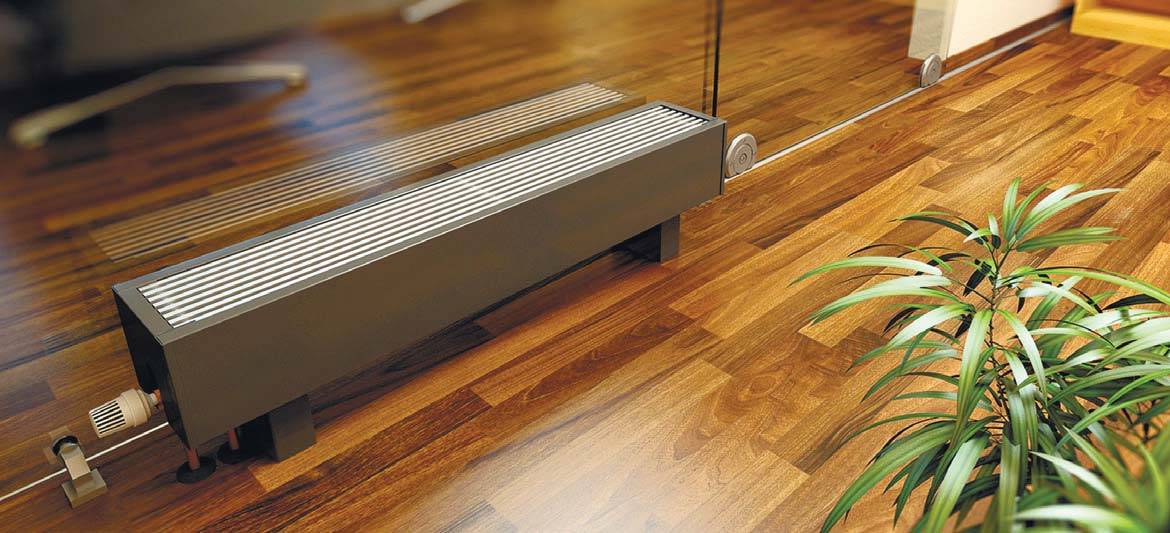 Еще одна новинка в мире отопительного оборудования – это цокольные водяные конвекторы. Они являются родственниками внутрипольных устройств, так как предназначены для скрытого монтажа. Их установка осуществляется в небольших нишах, в стенах, в лестничных ступеньках, в перегородках между комнатами. Цокольные конвекторы позволяют создать невидимую отопительную систему, отличающуюся высокой эффективностью. Они станут отличным выбором для тех, кто хочет создать эксклюзивный интерьер, в котором не будут встречаться отопительные приборы.