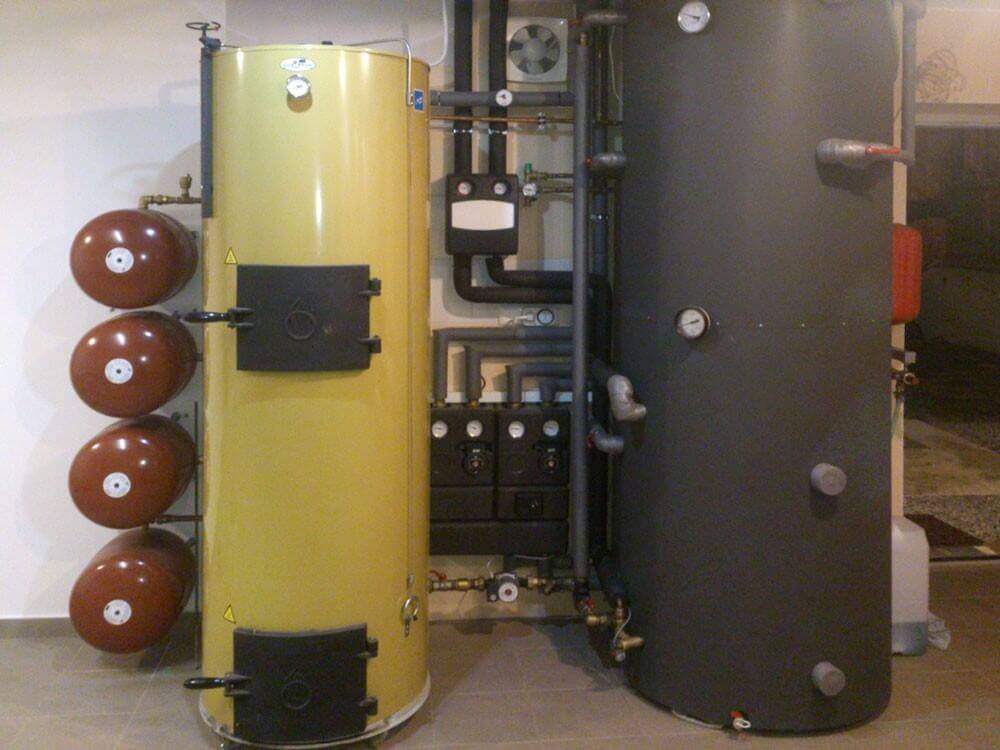 Тем не менее для них необходима установка отдельной топочной и складского топливного помещения, чтобы уголь или дрова перед подачей в топку были сухими.