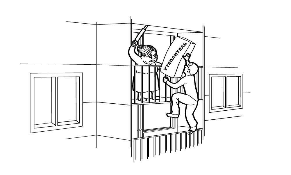 1. Соседа над вами вполне устраивает неутеплённый балкон. Фактически у него улица. У вас же площадь балкона станет частью квартиры, следовательно, перекрытие над вами нуждается в теплоизоляции. Руководствуясь утверждениями «знатоков», идёте к соседу в надежде утеплить пол на его балконе. Думаете, как быстро он на это согласится?
