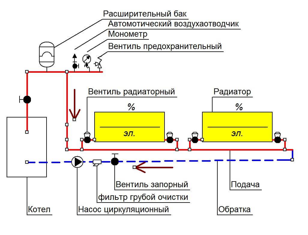 Какие узлы и элементы будут входить в набор комплектующих отопительной системы, зависит от типа системы отопления: